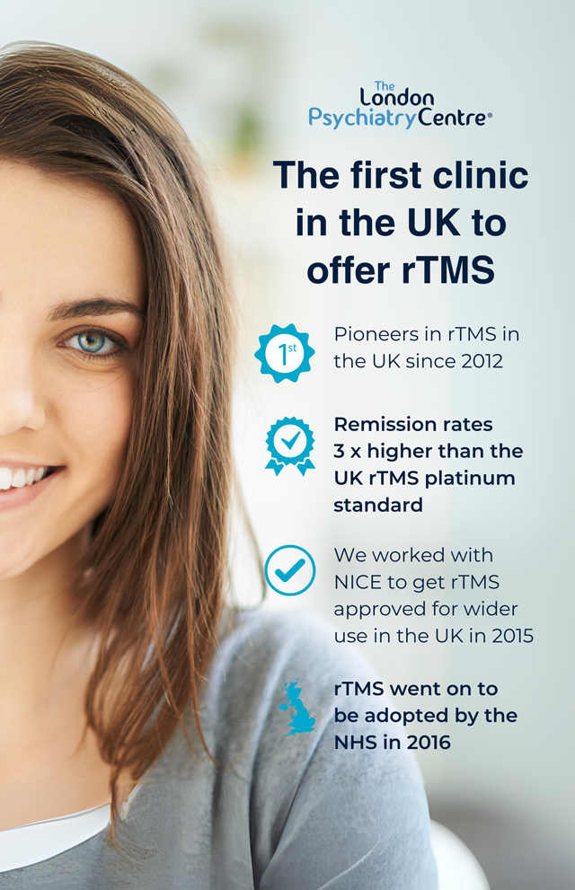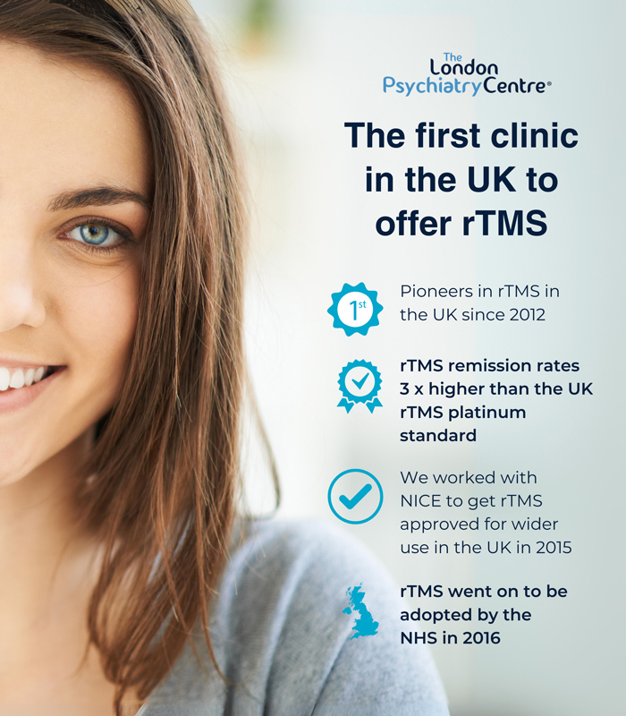 The London Psychiatry Centre pioneered repetitive Transcranial Magnetic Stimulation (rTMS) in the UK.